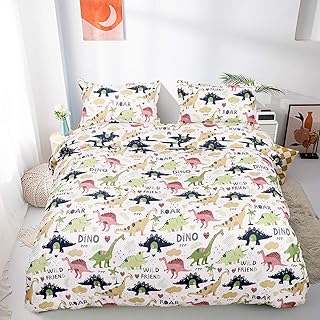 恐竜布団カバーセット ツインホワイト リバーシブル寝具 掛け布団カバー 枕カバー付き ジッパー開閉 マイクロファイバー カートゥーン 2ピース 掛け布団カバーセット アニメ キッズ ホームデコレーション 男の子 女の子 ツイン 68 x 90インチ